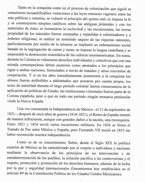 Respecto a la carta al Rey de España, el Presidente informó que la misma le fue enviada a propósito del 500 aniversario de las atrocidades cometidas por parte de la corona española a los habitantes de México Tenochtitlán. A continuación el texto completo:
