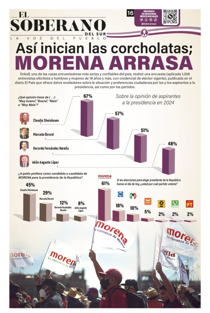 Enkoll, una de las casas encuestadoras más serias y confiables del país, realizó una encuesta (aplicada 1,208 entrevistas efectivas a hombres y mujeres de 18 años y más, con credencial de elector vigente), publicada en el diario El País que ofrece datos reveladores sobre la situación y preferencias ciudadanas por las y los aspirantes […]