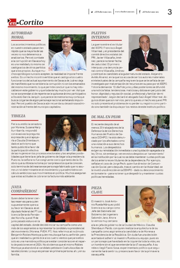 AUTORIDAD MORAL Los acontecimientos políticos en nuestro estado pasan tan rápido que la mayoría de las veces no nos detenemos a analizarlos. Pero el combate a la corrupción en Oaxaca hoy es una realidad y lo mismo se castiga a los de otros partidos que a los propios. Aunque muchos opinólogos nunca lo […]