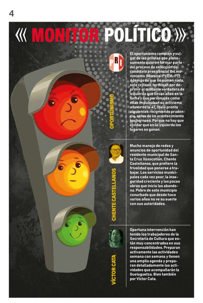 ROJO El oportunismo ramplón y vulgar de las priistas que afanosamente quieren formar parte del proceso de selección del candidato presidencial del movimiento (Morena-PVEM-PT). Además de que no suman nada, solo críticas, terminan por deprimir al militante verdadero de izquierda que llevan años en la lucha y que personajes como ellas impulsaban su […]