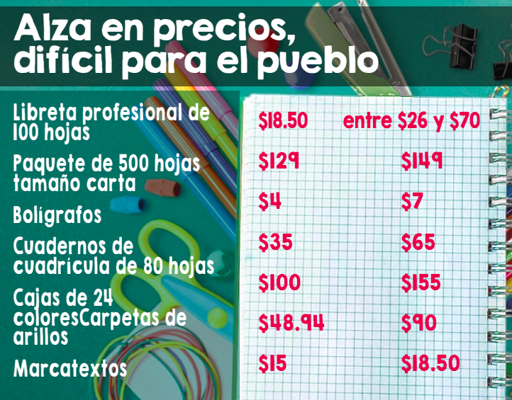 Sin embargo, el regreso a clases para las familias oaxaqueñas no es del todo alentador. La lista de precios promedio de los útiles escolares que revela el Instituto Nacional de Estadística y Geografía (INEGI), advierte que se han incrementado entre 50 y 100 por ciento en los últimos meses, en parte por los procesos inflacionarios globales pero también por el oportunismo empresarial.