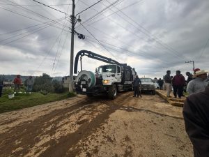 Brigadas de la Comisión del Agua del Estado de México (CAEM), junto con elementos de Protección Civil estatal y municipal, trabajan en la comunidad de Tlacuitlapa con apoyo de 40 integrantes del Grupo Tláloc, tres equipos vactor, bombas de achique, retroexcavadoras, camiones de volteo y pipas.