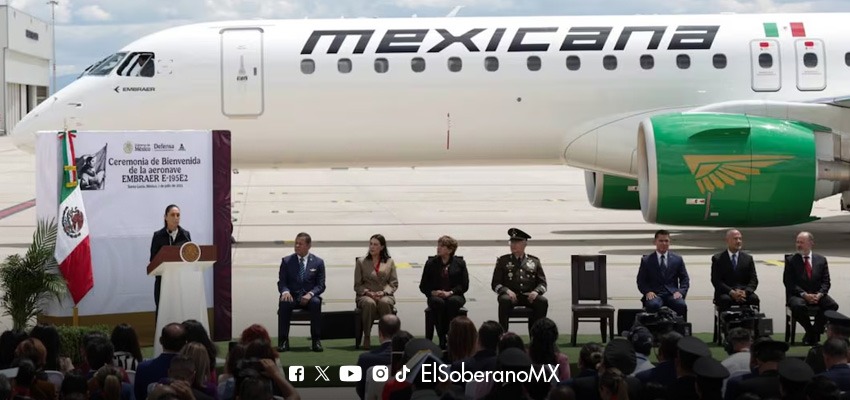 La Presidenta de México, Claudia Sheinbaum Pardo, encabezó este martes la ceremonia de recepción del primer avión Embraer E195-E2 que se integrará a la flota de Mexicana de Aviación, la histórica aerolínea estatal recuperada como parte de los proyectos de la Cuarta Transformación. El evento se realizó en el Aeropuerto Internacional Felipe Ángeles (AIFA), donde […]
