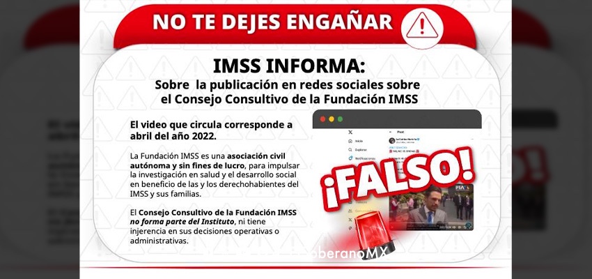 El Instituto Mexicano del Seguro Social (IMSS) desmintió categóricamente un video que ha circulado en redes sociales en los últimos días, y que pretende desinformar a la población sobre el funcionamiento del Consejo Consultivo de la Fundación IMSS. A través de un comunicado oficial, el Instituto precisó que dicho video data de abril de 2022 […]