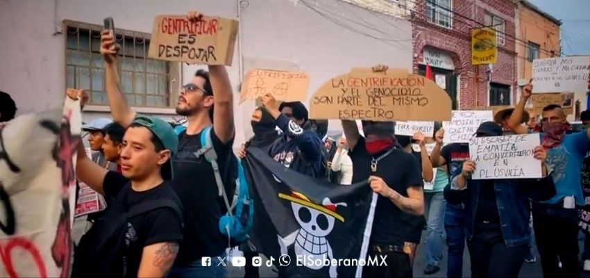 Durante la marcha, las consignas resonaban entre las calles del Centro Histórico: “San Pancho no se vende, se ama y se defiende”. La movilización no se limitó a los vecinos: colectivos feministas, activistas por la libertad de Palestina, grupos LGBT y organizaciones sociales se sumaron a la causa, evidenciando que la lucha contra la gentrificación es también una lucha contra el despojo en todas sus formas.