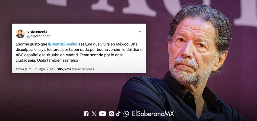 El periodista Jorge Zepeda Patterson ofreció disculpas públicas a través de su cuenta de X luego de difundir la versión publicada por el diario español ABC que aseguraba que Beatriz Gutiérrez Müller había decidido mudarse a Madrid. Enorme gusto que @BeatrizGMuller asegure que vivirá en México. Una disculpa a ella y a lectores por haber […]