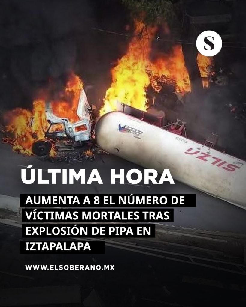 Explosión en Iztapalapa deja 8 muertos y 94 heridos, 22 graves, confirma Clara Brugada. Investigaciones apuntan a posible exceso de velocidad en la pipa.