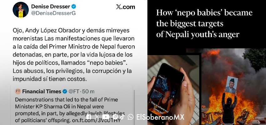 La columnista y vocera de la derecha, Denise Dresser, incentivó en redes sociales el linchamiento físico contra Andrés Manuel López Beltrán, hijo del Presidente Andrés Manuel López Obrador, demostrando una vez más el odio del que está hecha la oposición. Ante los trágicos hechos que ocurren en Nepal, tras las manifestaciones por la censura y […]