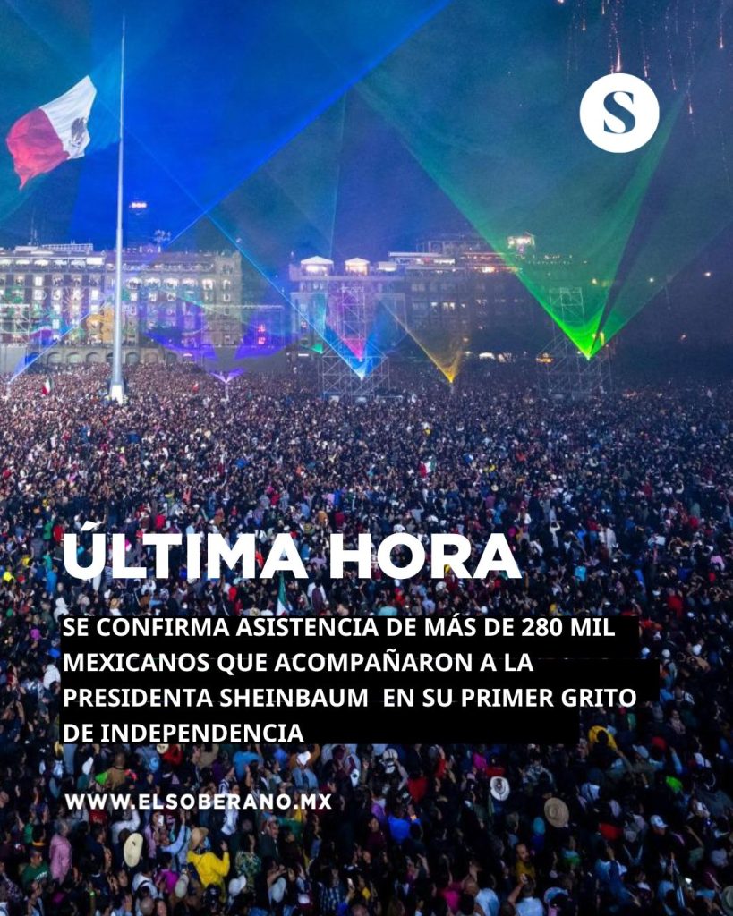 280 mil personas se reúnen en el Zócalo para el Grito de Claudia Sheinbaum