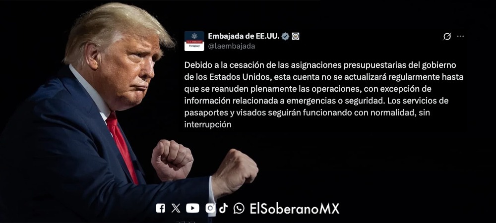 La Embajada de Estados Unidos en México sorprendió a todos en X con un mensaje que no deja de ser irónico: debido a la cesación de las asignaciones presupuestarias de su propio gobierno, su cuenta no se actualizará regularmente hasta que Washington “reanude plenamente las operaciones”. Debido a la cesación de las asignaciones presupuestarias del […]