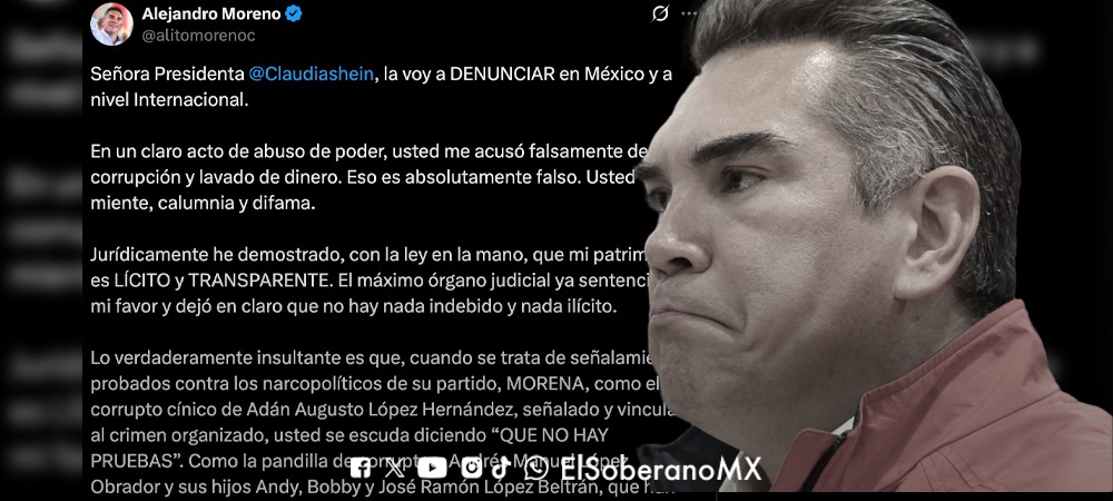El líder del PRI, Alejandro “Alito” Moreno, protagonizó un nuevo episodio digno de telenovela en redes sociales. Esta vez, desde su cuenta de X, anunció que denunciaría a la Presidenta Claudia Sheinbaum “en México y a nivel internacional” por supuestas calumnias sobre corrupción y lavado de dinero. El mensaje de Moreno, plagado de mayúsculas, acusaciones […]