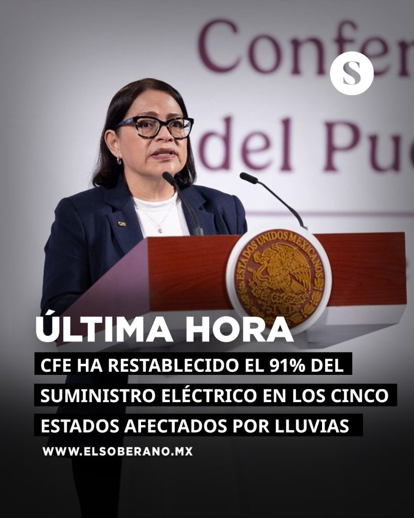 La CFE ha restablecido el suministro en 91% de los hogares afectados por las lluvias en Veracruz, Hidalgo, Puebla, Querétaro y San Luis Potosí.