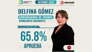La Gobernadora del Estado de México, Delfina Gómez Álvarez, alcanzó en octubre su nivel más alto de aprobación en lo que va de 2025, con un 65.8%, según la más reciente encuesta de Demoscopia Digital. Este registro marca un nuevo récord en la percepción ciudadana sobre su gestión.