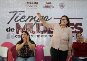 Este domingo 9 de noviembre, Imelda Castro continuó su recorrido en el norte del estado: por la mañana, visitó el municipio de Choix, donde 500 asistentes reconocieron su gestión para que se duplicara el número de beneficiarios del programa Sembrando Vida en ese municipio.