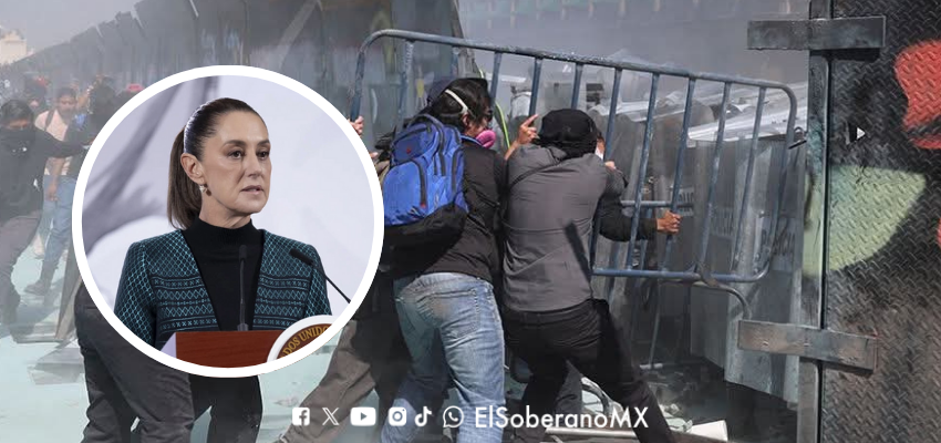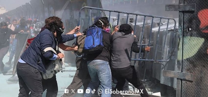 Grupos golpistas de la falsa marcha de la «Gen Z» avanzaron con violencia hacia Palacio Nacional, en otra puesta en escena diseñada para provocar y desestabilizar.