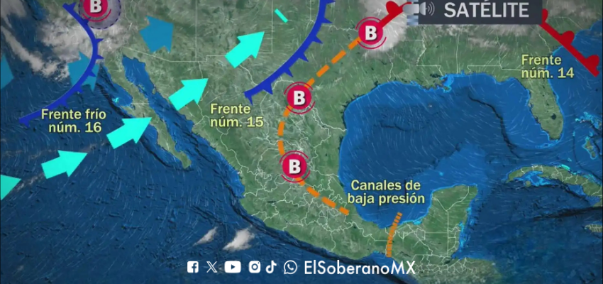 El frente frío número 16, acompañado por la masa de aire polar que lo impulsa, avanza este domingo sobre el noroeste de México, generando un ambiente de muy frío a gélido, lluvias, rachas intensas de viento y las primeras nevadas de la temporada invernal.