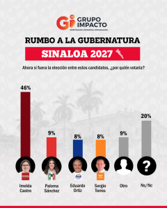 A falta de un año para que comience formalmente el proceso electoral, la tendencia es clara y consistente: Imelda Castro se consolida como la principal aspirante de Morena y la líder indiscutible de las preferencias rumbo a la gubernatura de Sinaloa en 2027.