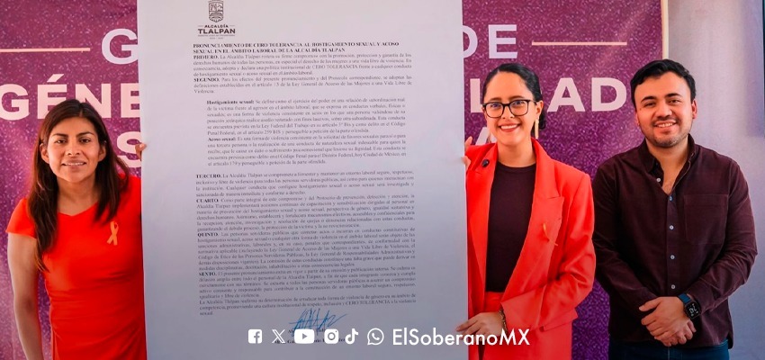 Durante la Primera Sesión 2026 del Gabinete de Género e Igualdad Sustantiva, la alcaldesa firmó el pronunciamiento que establece que toda conducta de hostigamiento o acoso será investigada y sancionada, además de contemplar capacitación permanente y mecanismos confidenciales de denuncia.