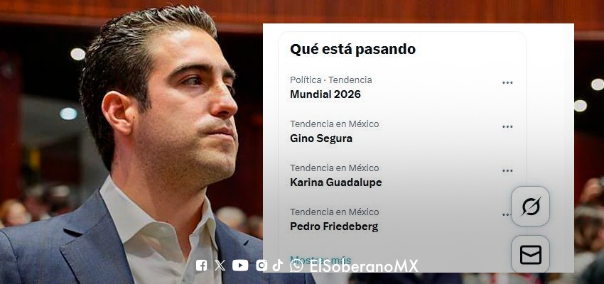 El Senador Gino Segura se posicionó este jueves como tendencia nacional en la red social X, luego de salir en defensa de la Reforma Electoral impulsada por la Presidenta Claudia Sheinbaum.