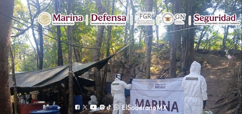 Elementos de la Secretaría de Marina desmantelaron un narcolaboratorio en Guerrero con capacidad para producir 6.7 toneladas de metanfetaminas al mes, una operación criminal valuada en 95 millones de dólares mensuales, según estimaciones del Gabinete de Seguridad.