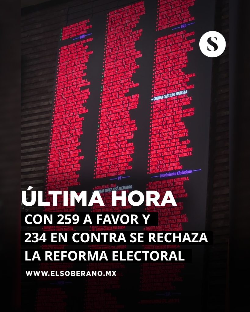 Con 259 a favor y 234 en contra la reforma electoral de la Presidenta Claudia Sheinbaum fue desechada en la Cámara de Diputados.