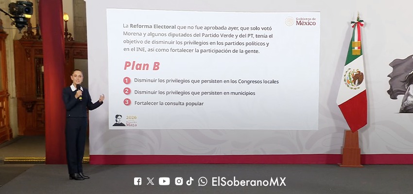 La Presidenta Claudia Sheinbaum informó que su Gobierno enviará un “Plan B” de Reforma Electoral luego de que la iniciativa presentada no fuera aprobada en el Cámara de Diputados. La propuesta busca retomar el objetivo central de la reforma: reducir privilegios dentro del sistema político y fortalecer la participación ciudadana.