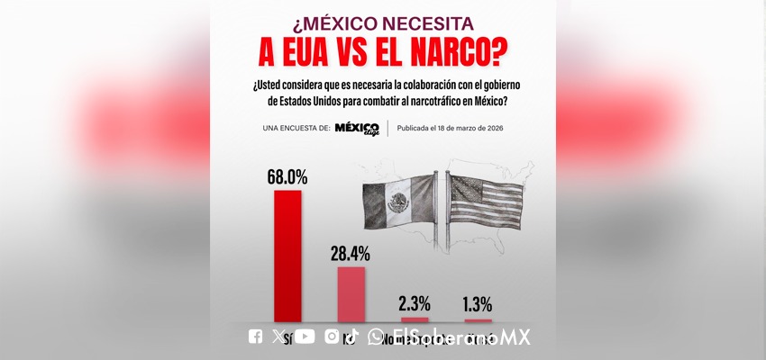 De acuerdo con una encuesta difundida por la casa México Elige, el 68% de los mexicanos considera necesaria la colaboración de Estados Unidos con autoridades mexicanas para enfrentar al crimen organizado, frente a un 28.4% que se manifestó en contra.