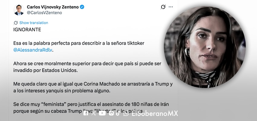 El Director editorial de El Soberano, Carlos Zenteno, lanzó una crítica directa contra la tiktokeraAlessandra Rojo de la Vega, luego de sus declaraciones en redes sociales sobre la posible intervención de Estados Unidos en otros países.