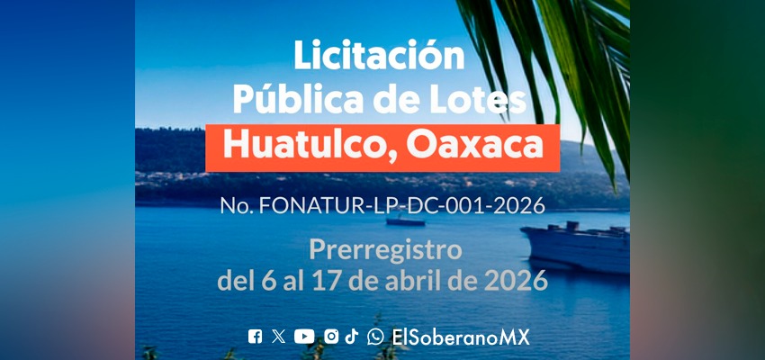 El Fondo Nacional de Fomento al Turismo (Fonatur) lanzó hoy la Licitación Pública No. FONATUR-LP-DC-001-2026 de lotes en el Centro Integralmente Planeado (CIP) Huatulco, Oaxaca, una acción institucional orientada a administrar de manera responsable y transparente su patrimonio turístico, fomentar la inversión productiva y fortalecer el desarrollo regional.