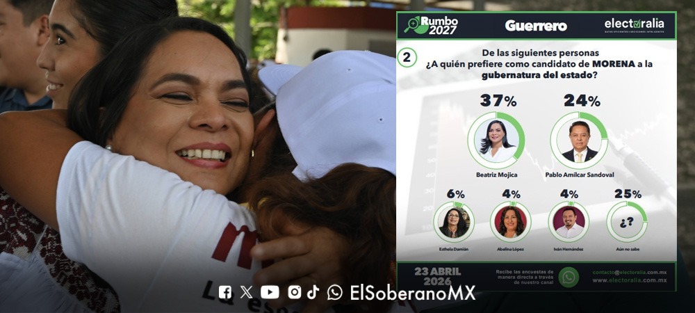 Al interior de Morena, Beatriz Mojica concentra el 37% de la preferencia como candidata al gobierno estatal, más que duplicando a su más cercano competidor, Pablo Amílcar Sandoval, quien obtiene el 24%. Le siguen a distancia Esthela Damián con 6%, y Abelina López e Iván Hernández con 4% cada uno. Un 25% de los simpatizantes morenistas aún no se inclina por ningún nombre.
