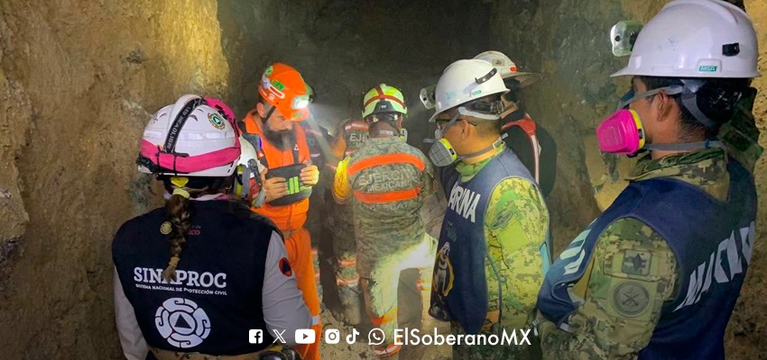 En el operativo participaron cerca de 389 elementos de distintas instituciones federales y estatales, incluyendo fuerzas armadas, personal de protección civil y especialistas técnicos, quienes enfrentaron condiciones adversas como inundaciones, lodo y estructuras inestables dentro del yacimiento.