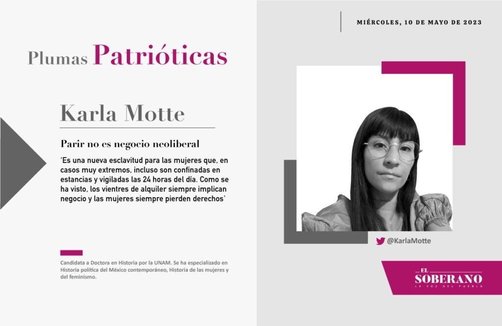 Por eso las feministas antineoliberales nos manifestamos porque el Estado mexicano prohíba cualquier modelo de subrogación, y no permita a las empresas transnacionales explotar a las mujeres de nuestros territorios. En el día de las madres, insistamos en que parir no debe considerarse un negocio, sino una decisión informada y libre de la mujer que toma esa crucial decisión de vida. Además, el embarazo y parto no debe desvincularse del derecho de filiación que todas las mujeres debemos tener garantizado. Apoyamos, por lo tanto, la propuesta del senador de Morena, José Narro Céspedes, para prohibir el alquiler de vientres en nuestro país.