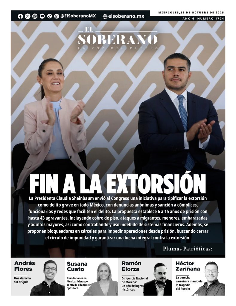 La Presidenta Claudia Sheinbaum Pardo envió al Congreso una iniciativa para tipificar la extorsión como delito grave en todo México, con denuncias anónimas y sanción a cómplices, funcionarios y redes que faciliten el delito. La propuesta establece 6 a 15 años de prisión con hasta 43 agravantes, incluyendo cobro de piso, ataques a migrantes, menores, embarazadas y adultos mayores, así como contrabando y uso indebido de sistemas financieros. Además, se proponen bloqueadores en cárceles para impedir operaciones desde prisión, buscando cerrar el círculo de impunidad y garantizar una lucha integral contra la extorsión.