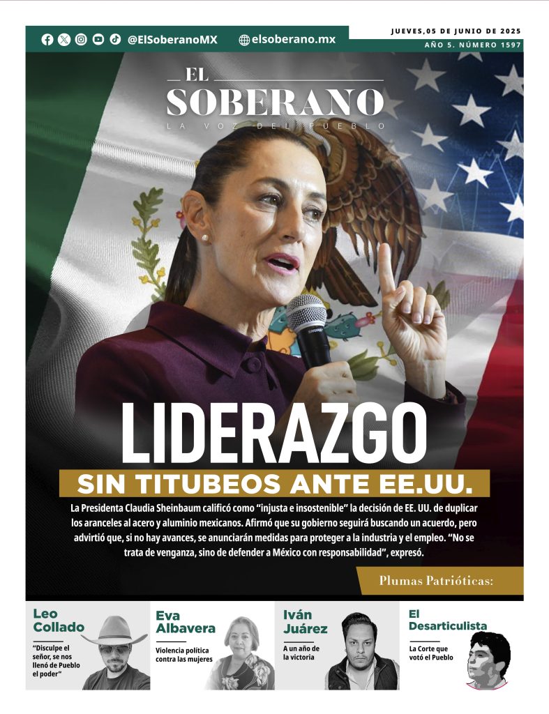 La Presidenta Claudia Sheinbaum calificó como “injusta e insostenible” la decisión de EE. UU. de duplicar los aranceles al acero y aluminio mexicanos. Afirmó que su gobierno seguirá buscando un acuerdo, pero advirtió que, si no hay avances, se anunciarán medidas para proteger a la industria y el empleo. “No se trata de venganza, sino de defender a México con responsabilidad”, expresó.